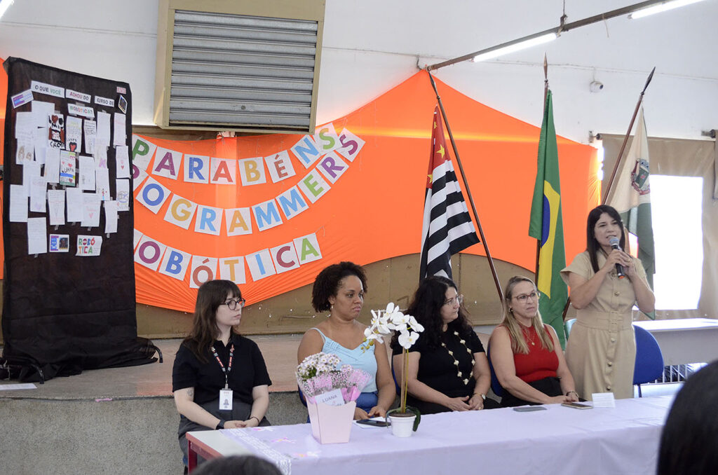 A diretora municipal de Ensino, Tania Cristina de Godoy Gonçalves, representou a gestora municipal de Educação, Magali de Souza, que não teve como estar presente. Na cerimônia, ela fez questão de agradecer ao Sesi e todos os profissionais da Prefeitura que foram fundamentais para o sucesso da parceria, que, além de abordar conhecimentos muito importantes e atuais, aflora o conhecimento e a vontade de aprender cada vez mais.