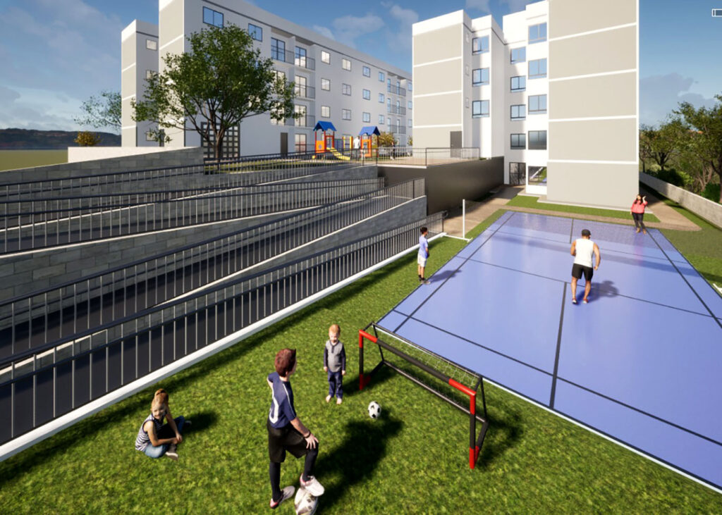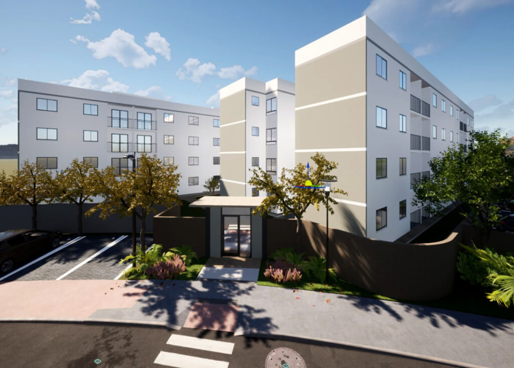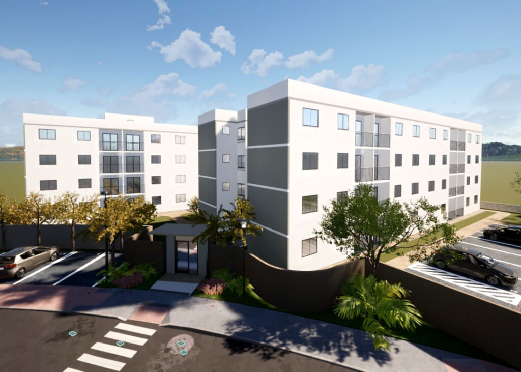 O conjunto habitacional terá área de lazer, playground, estacionamento para moradores e visitantes, hall de convivência, além de infraestrutura preparada para receber elevador e geração de energia solar. Todos os apartamentos terão 44m², divididos em dois dormitórios, sala, cozinha e banheiro. A medição de água, energia e gás será individualizada.