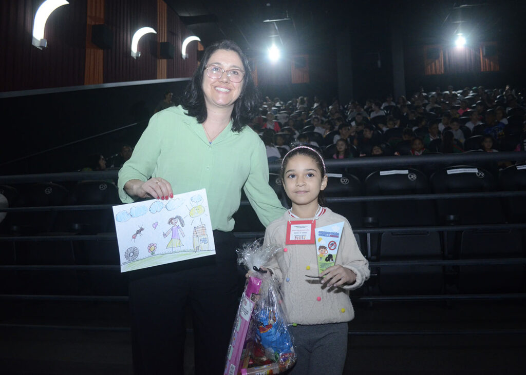 Na manhã desta terça-feira (14), cerca de 150 crianças participaram de uma programação especial no Várzea Paulista Shopping, durante a entrega dos troféus do projeto “Unidos Contra a Dengue”, que chega a sua 8ª edição. A ação contou com uma sessão de cinema, solenidades e premiações individuais para alunos de seis escolas da rede municipal de ensino, que se destacaram com desenhos sobre o combate ao mosquito Aedes aegypti.