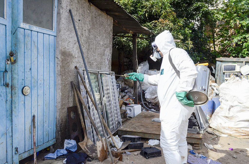 O local recebeu dois tipos de trabalho: a nebulização costal (fumacê), que elimina os mosquitos que estão voando no momento da aplicação e a com inseticida residual, que age de forma contínua, eliminando os mosquitos que pousam na superfície tratada por um período de até 6 meses.
