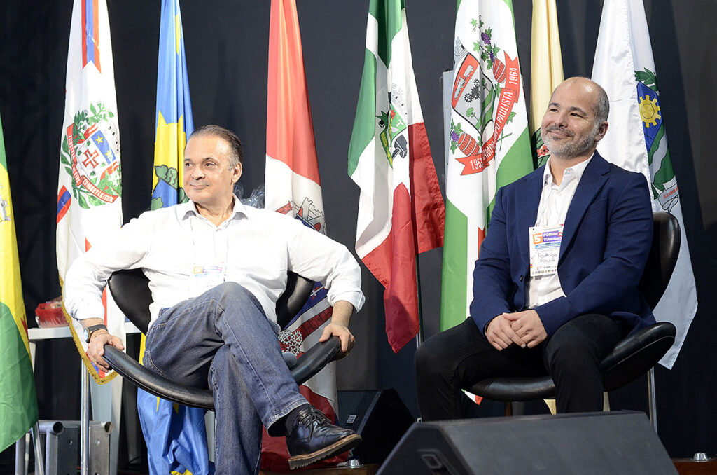 Na sequência, o primeiro painel trouxe ao centro do debate o tema “Turismo na mesa do desenvolvimento econômico”. Participaram como mediador William Paixão, painelistas Roberto de Lucena, secretário de Turismo e Viagens do Estado de São Paulo; Rodrigo Rocca, secretário de Turismo e Cultura de Cajamar; e Luciana Derze, consultora em inteligência turística. A discussão destacou a importância do planejamento estratégico, do uso de dados e da cooperação entre os municípios para impulsionar o setor.