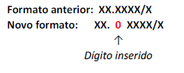 O novo número é formado pela inserção do dígito 0 (zero) na terceira posição do código original.